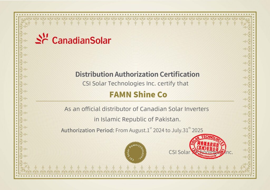 FAMN Shine Co is an Authorized Distributor of Canadian Solar Inverters in Pakistan